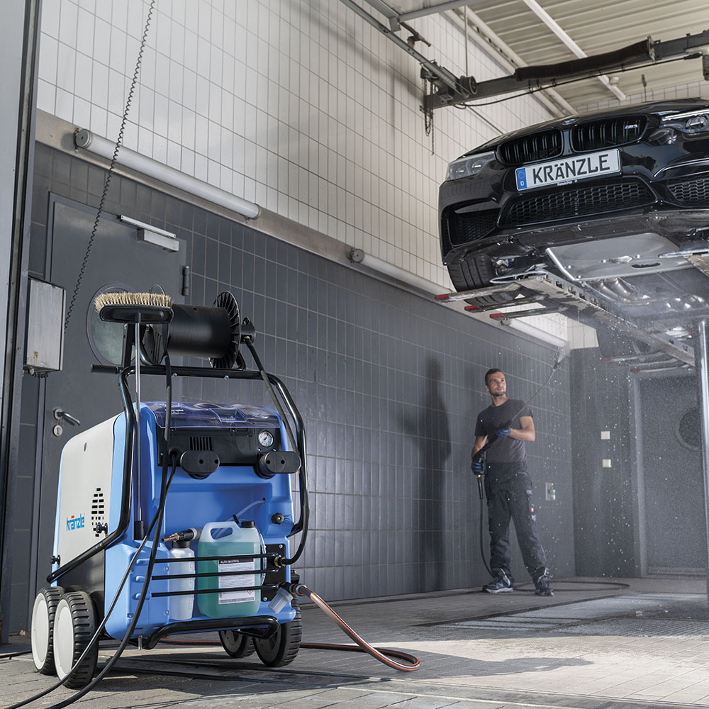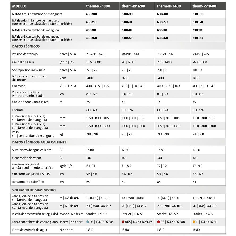 - Con tambor de manguera y manguera trenzada de acero de alta presión de 12 metros.