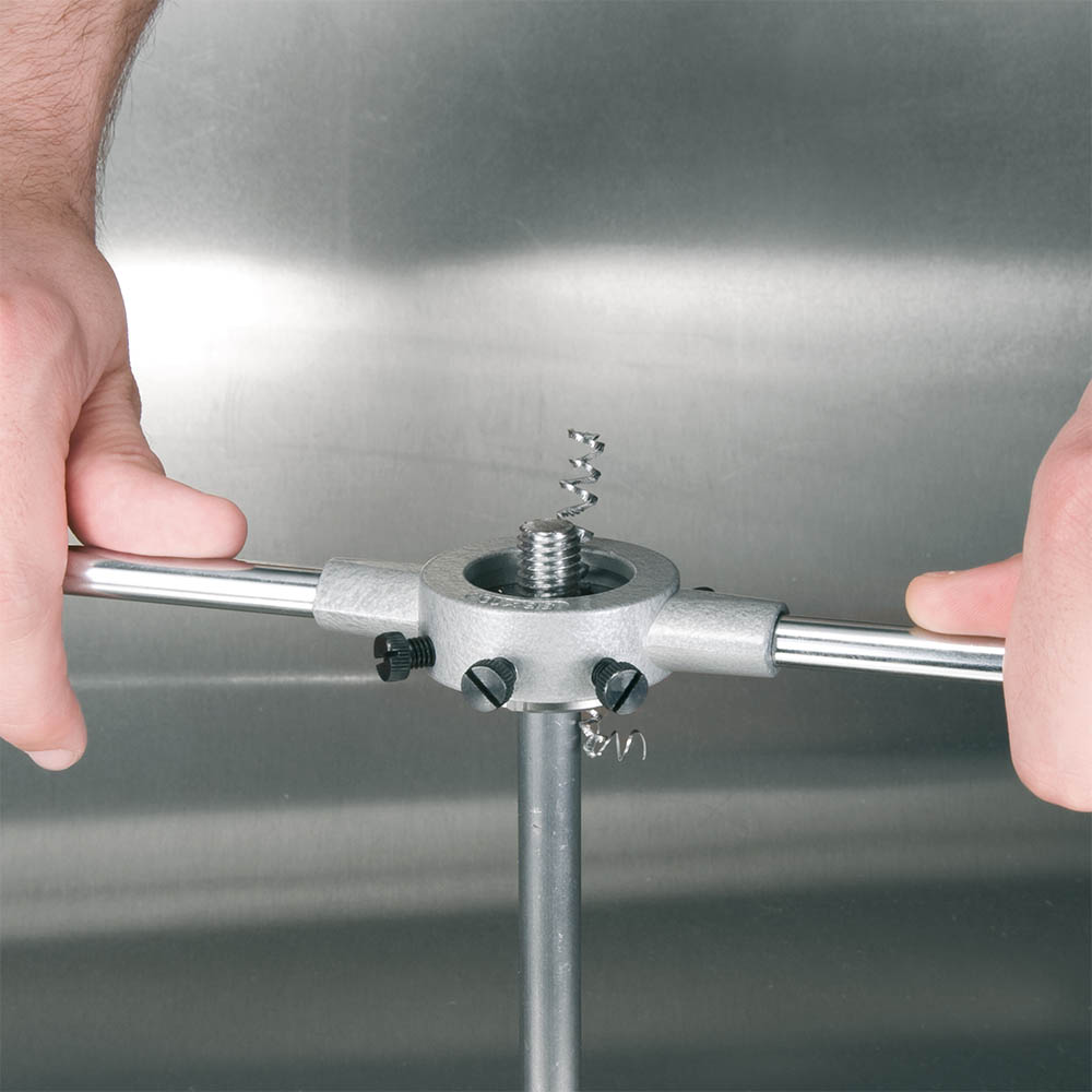 Con mangos de acero uno de ellos desenroscable. Con 5 tornillos para fijación del cojinete.
