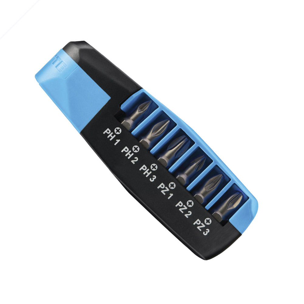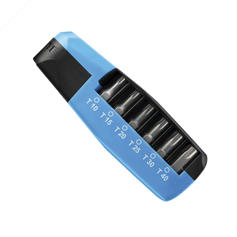 Un soporte de cambio rápido y seis puntas de alta calidad en diferentes surtidos ofrecen la herramienta adecuada para cada aplicación de tornillo.