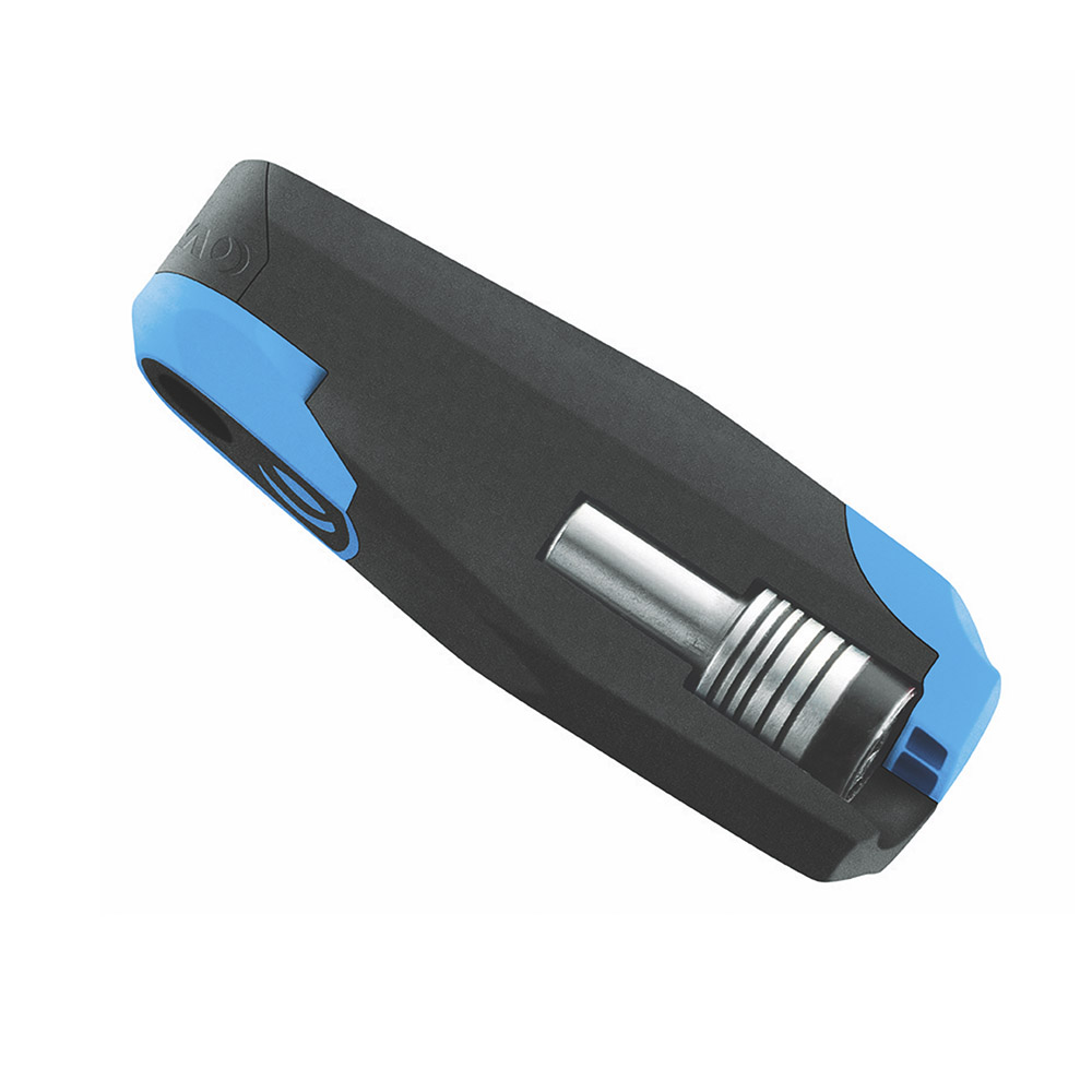 Potente mecanismo de trinquete integrado en una caja de bits compacta.