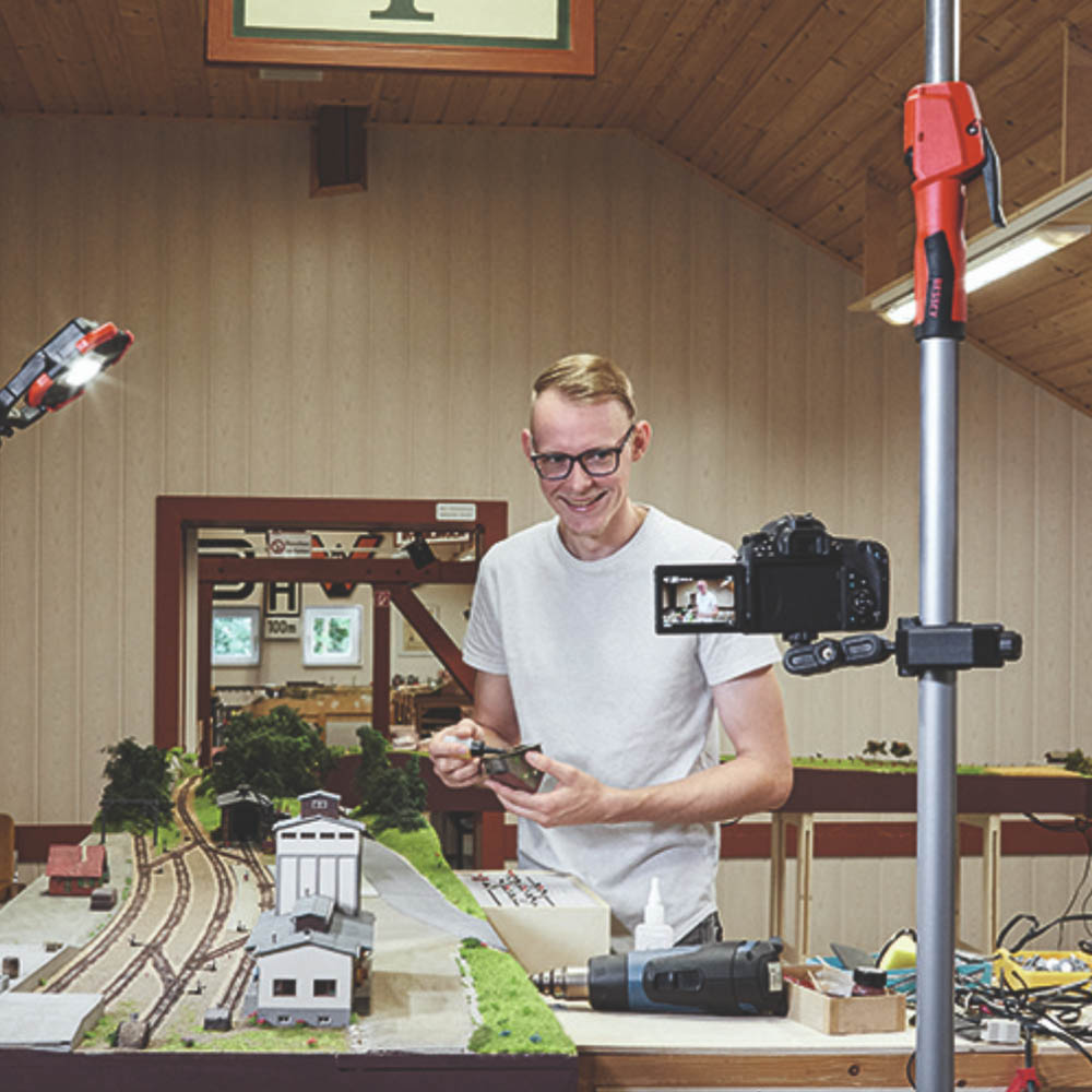 Puede utilizarse sin herramientas en piezas portadoras redondas (0-45 mm) y cuadradas (0-55 mm), como p. ej., soportes de techos y de montaje, perfiles, escaleras