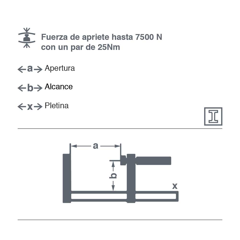 - Fuerza de apriete de hasta 7.500 N con un par de 25 Nm